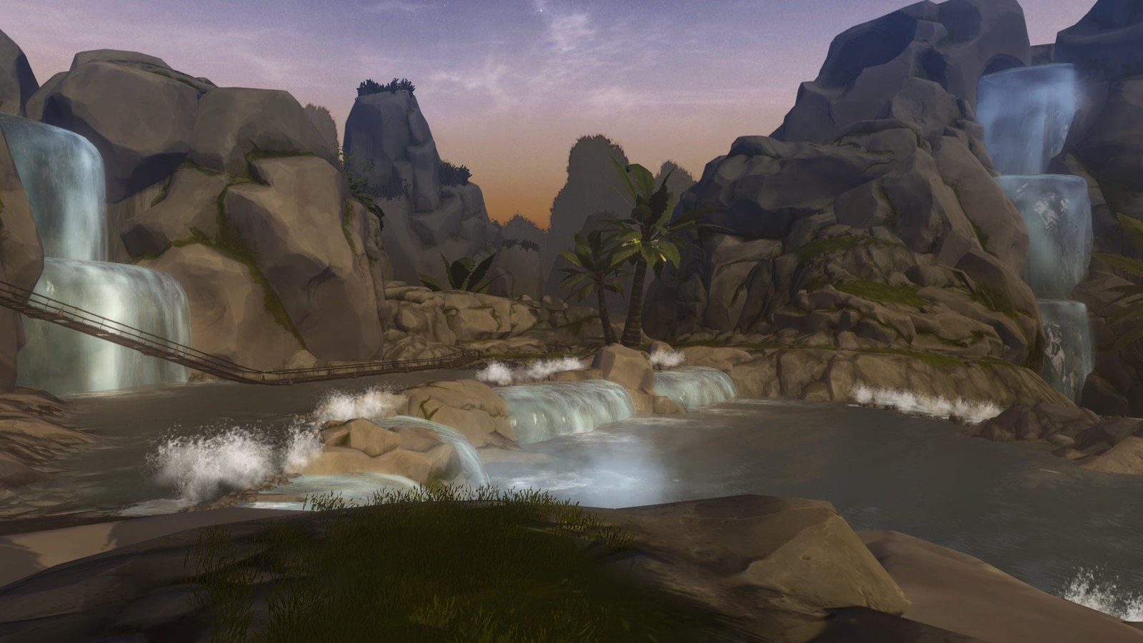 Yes, I want waterfalls and streams (plural) throughout the island.