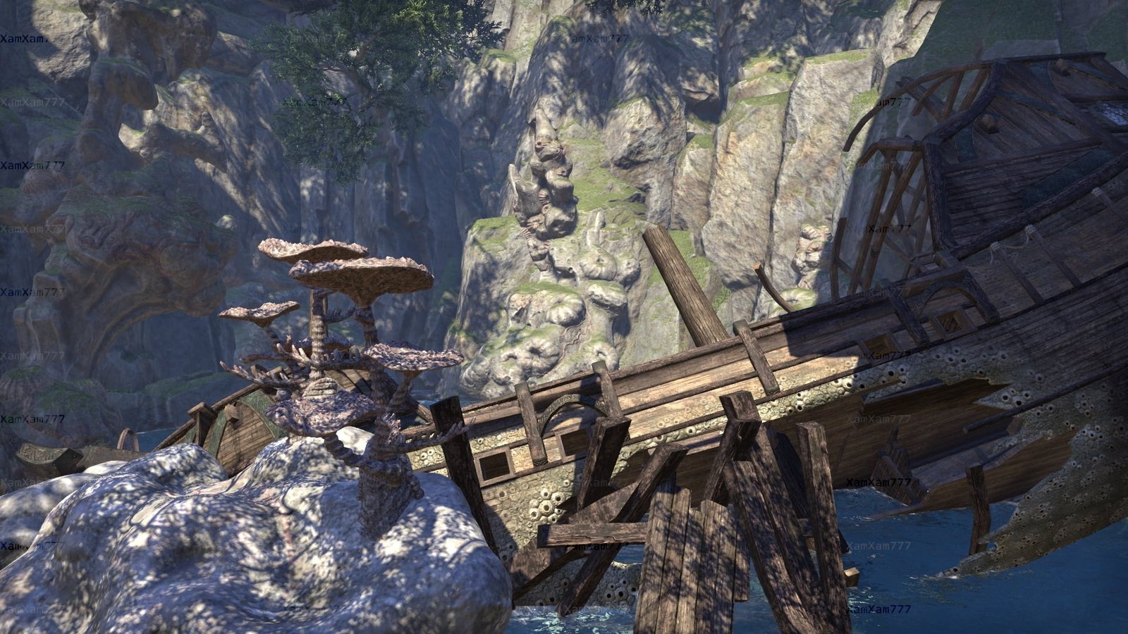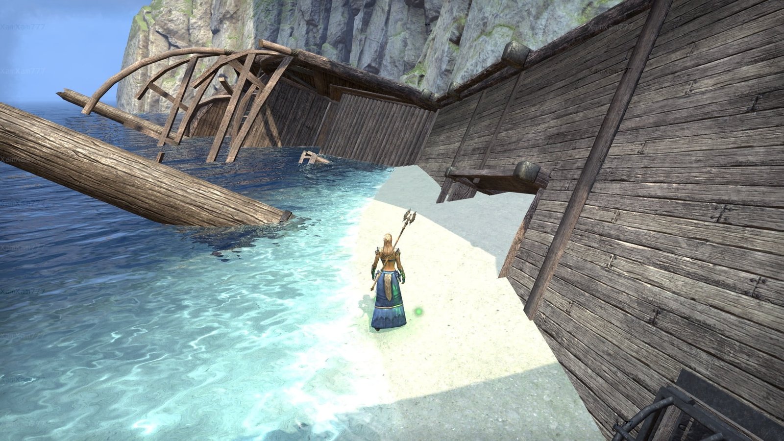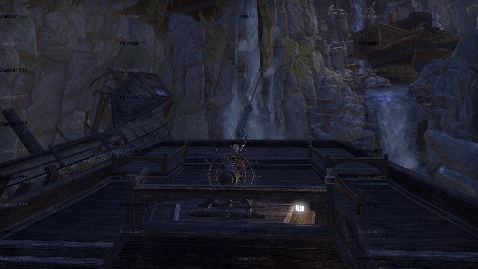 Once a watering stop for the High Elf navy, this great cavenous grotto on the Summerset coast west of Dusk features shipboard compartments, magnificent Aldmeri ruins, weathered wood from several shipwrecks, and a sparkling subterranean waterfall.
