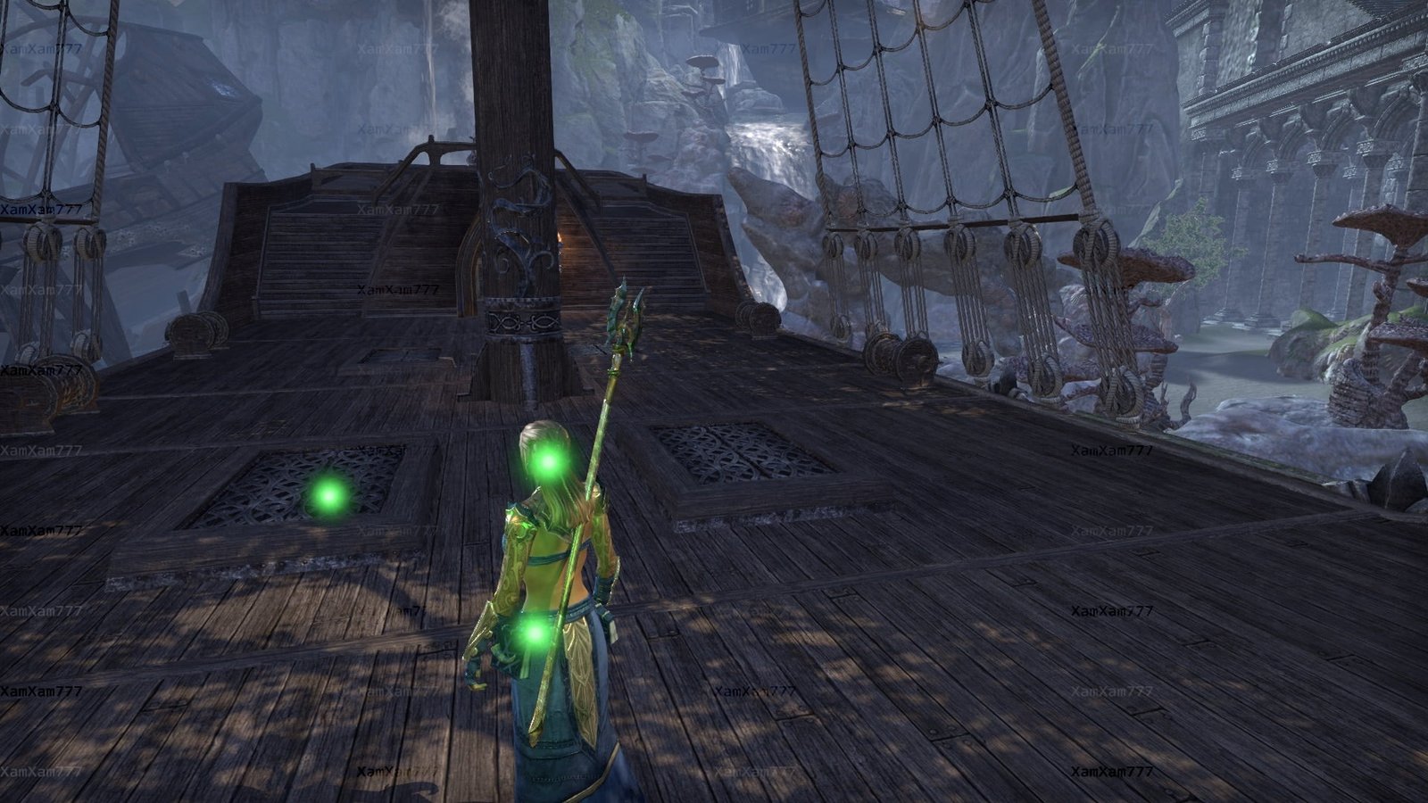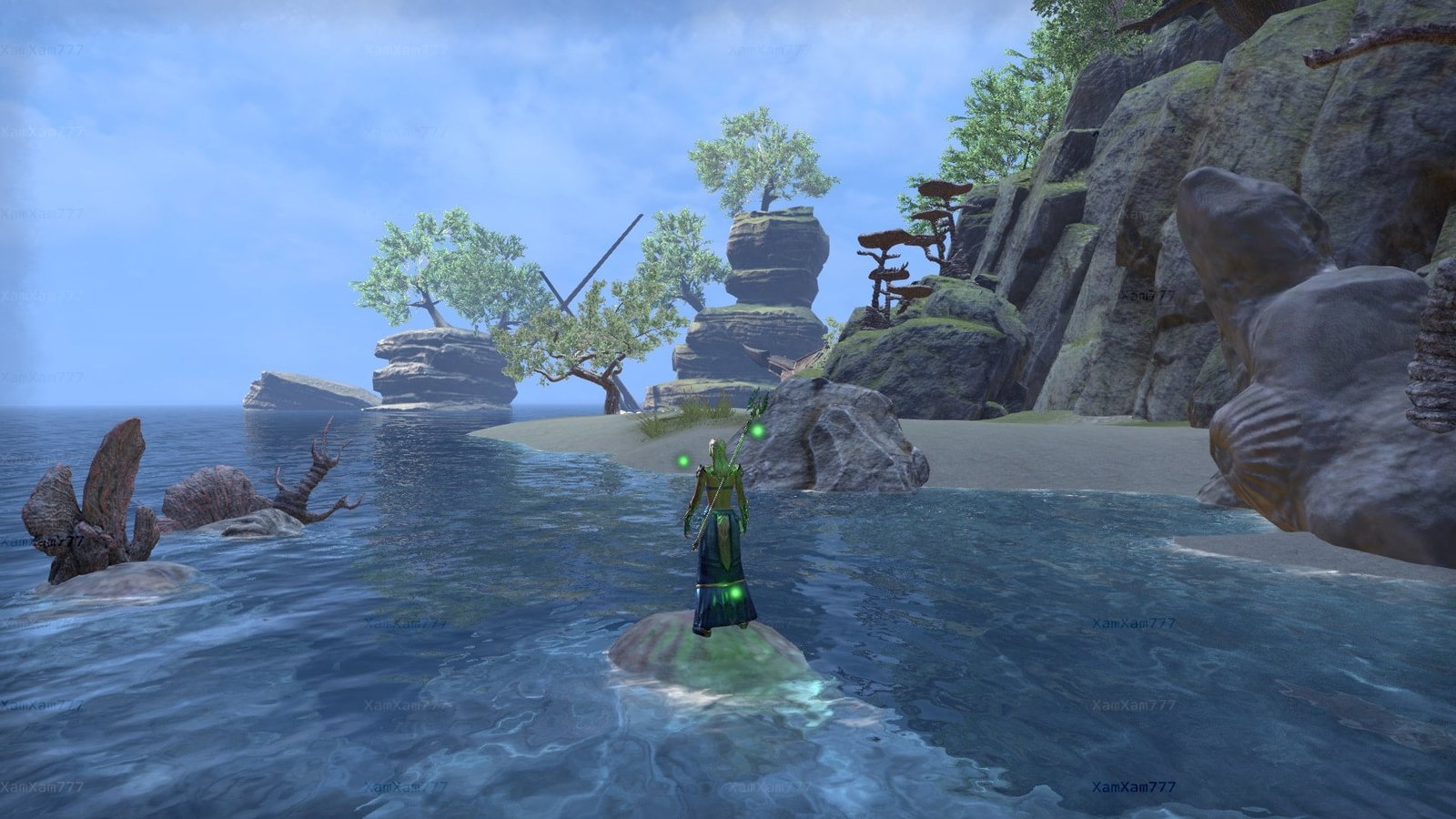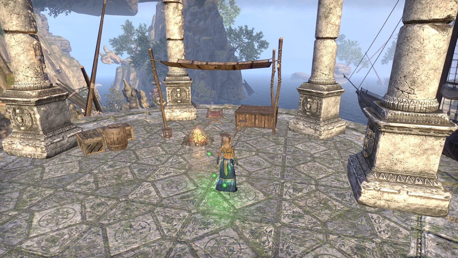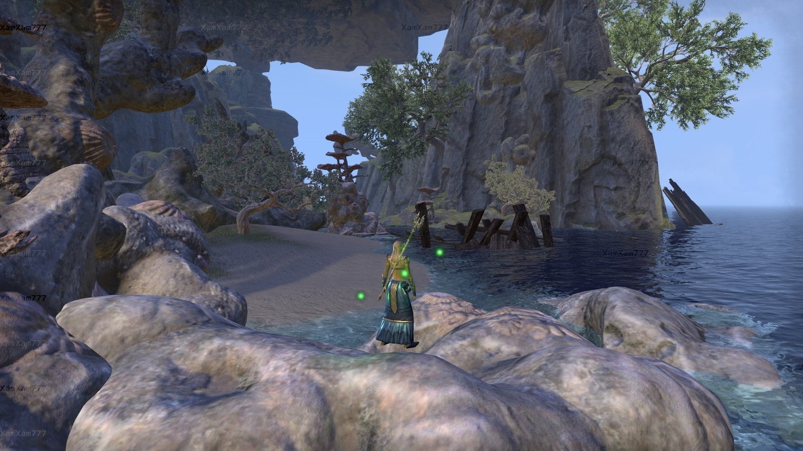 Once a watering stop for the High Elf navy, this great cavenous grotto on the Summerset coast west of Dusk features shipboard compartments, magnificent Aldmeri ruins, weathered wood from several shipwrecks, and a sparkling subterranean waterfall.