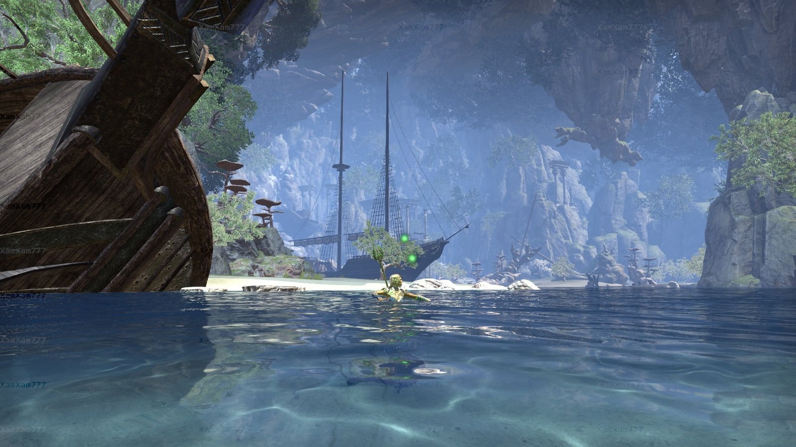 As the nameย suggests, it is a massive grotto more than large enough to house your very own ship! Yes, you get your very own ship you can decorate that is anchored in a large grotto full of ancient ruins you can climb and beach space you can frolick on. There are plenty of nooks and cranniesย and interesting features to find.