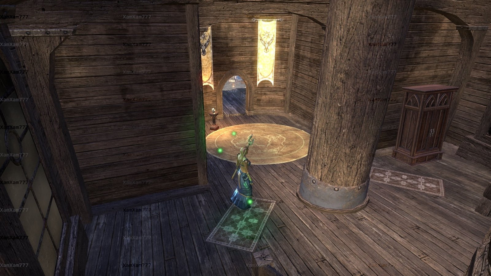 You enter the home via the Alinor Docks. The wheel on the Ship is how you exit.