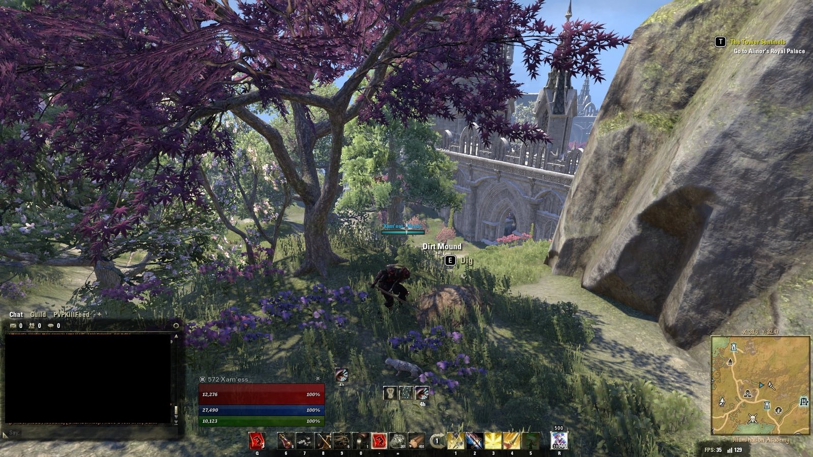 - Location – Just northeast of Ebon Stadmont up near the cliff edge by some pink trees west of the King’s Haven Pass Delve.