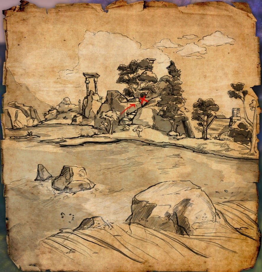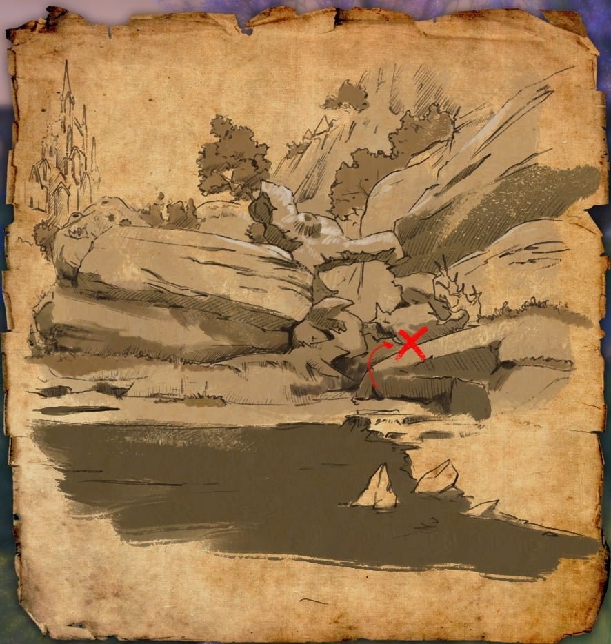 - Location – By a tree among the rocks by the lake between Archon’s Grove Delve and the ‘Garden of Sacred Numbers’ Striking Locale just south of some ancient ruins.