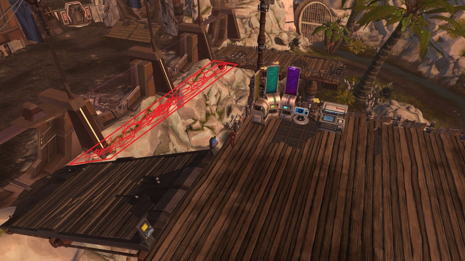 It certainly has that shanty town feel and I like it but I would also like to see a building added (as others have asked also) that is exactly like the Blaster’s Path Cantina in Rishi Cove. A more clean-cut building in this area would be nice.