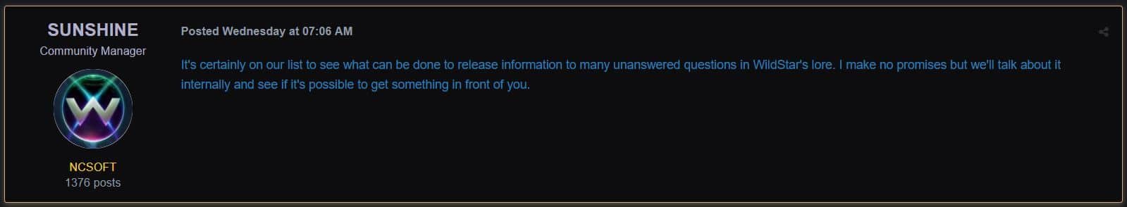 This year, I kept looking out for news of more Wildstar content hoping that maybe there’d finally be a lore update. But it wasn’t to be, unfortunately. Besides, my other two MMO’s had my complete focus. I had fully intended to return to the game once I got a new PC but now, I probably won’t ever get to experience Wildstar in all of its glory.