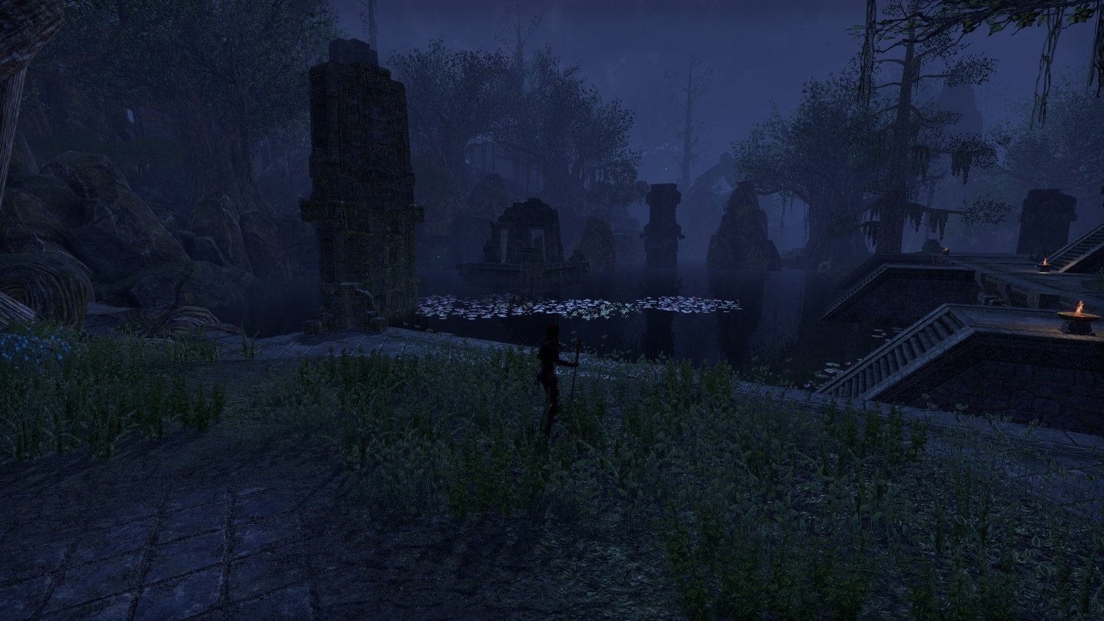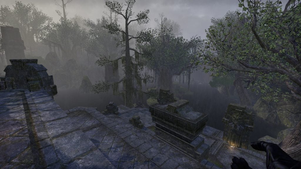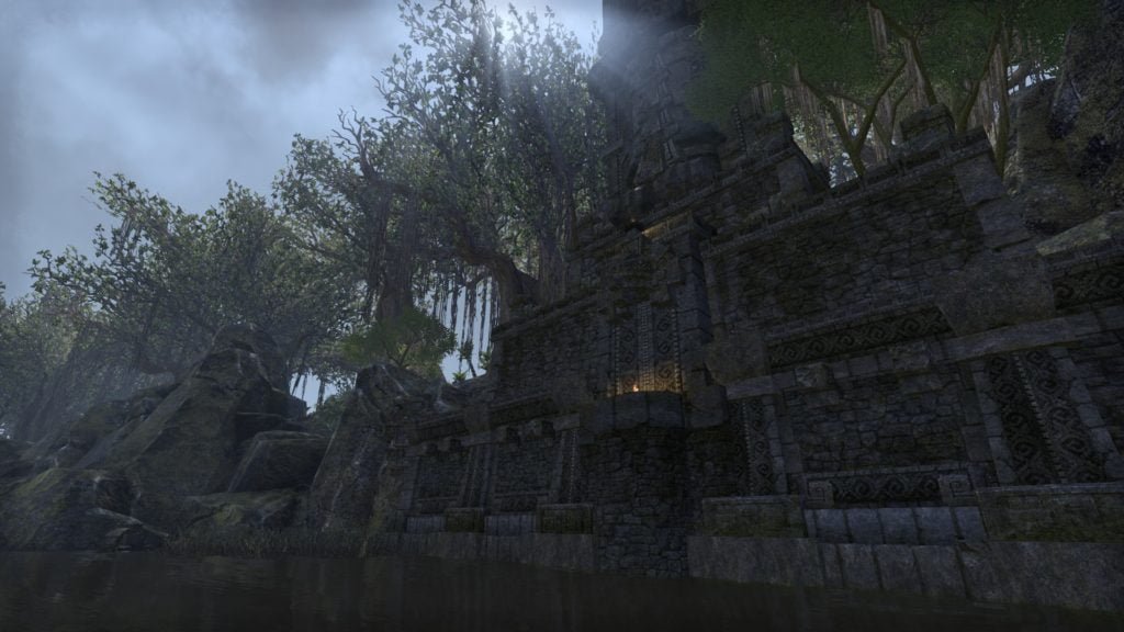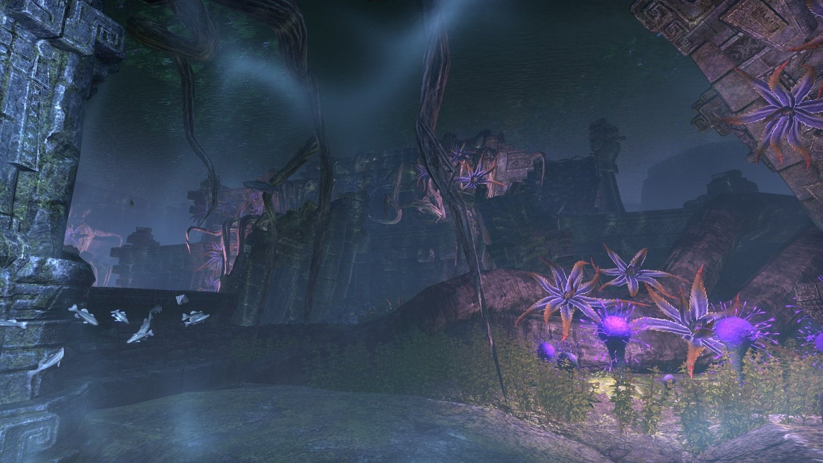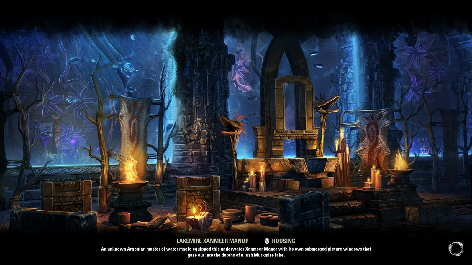 An unknown Argonian master of water equipped this underwater XanmeerManor with its own submerged picture windows that gaze out into the depths of a lush Murkmire lake.
