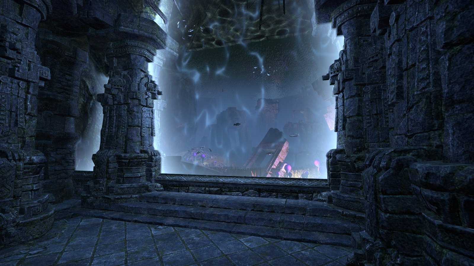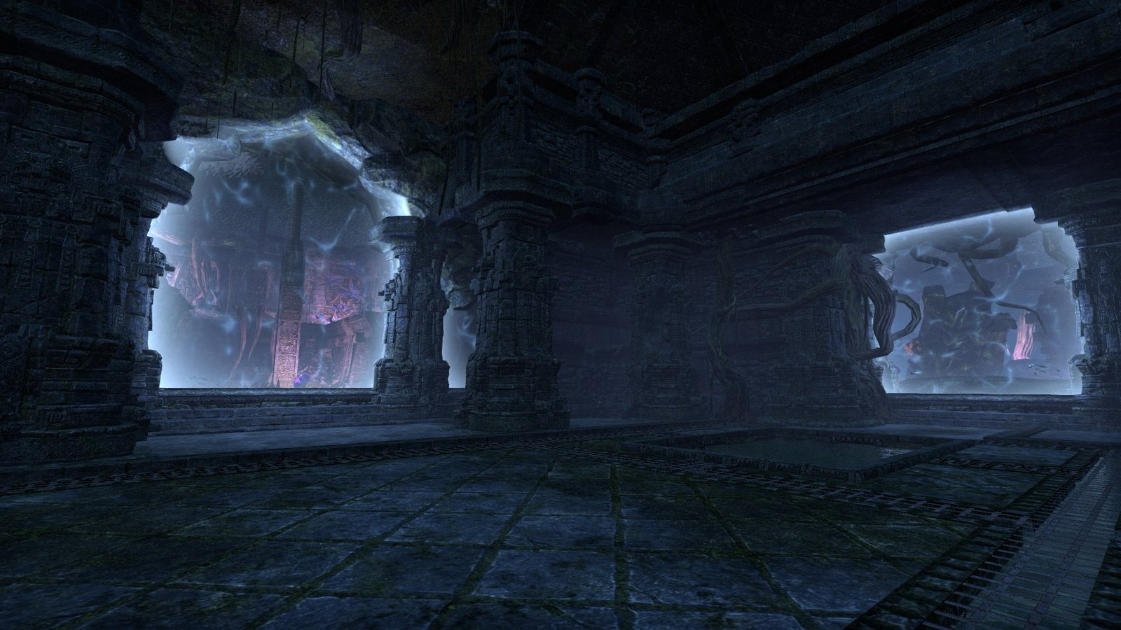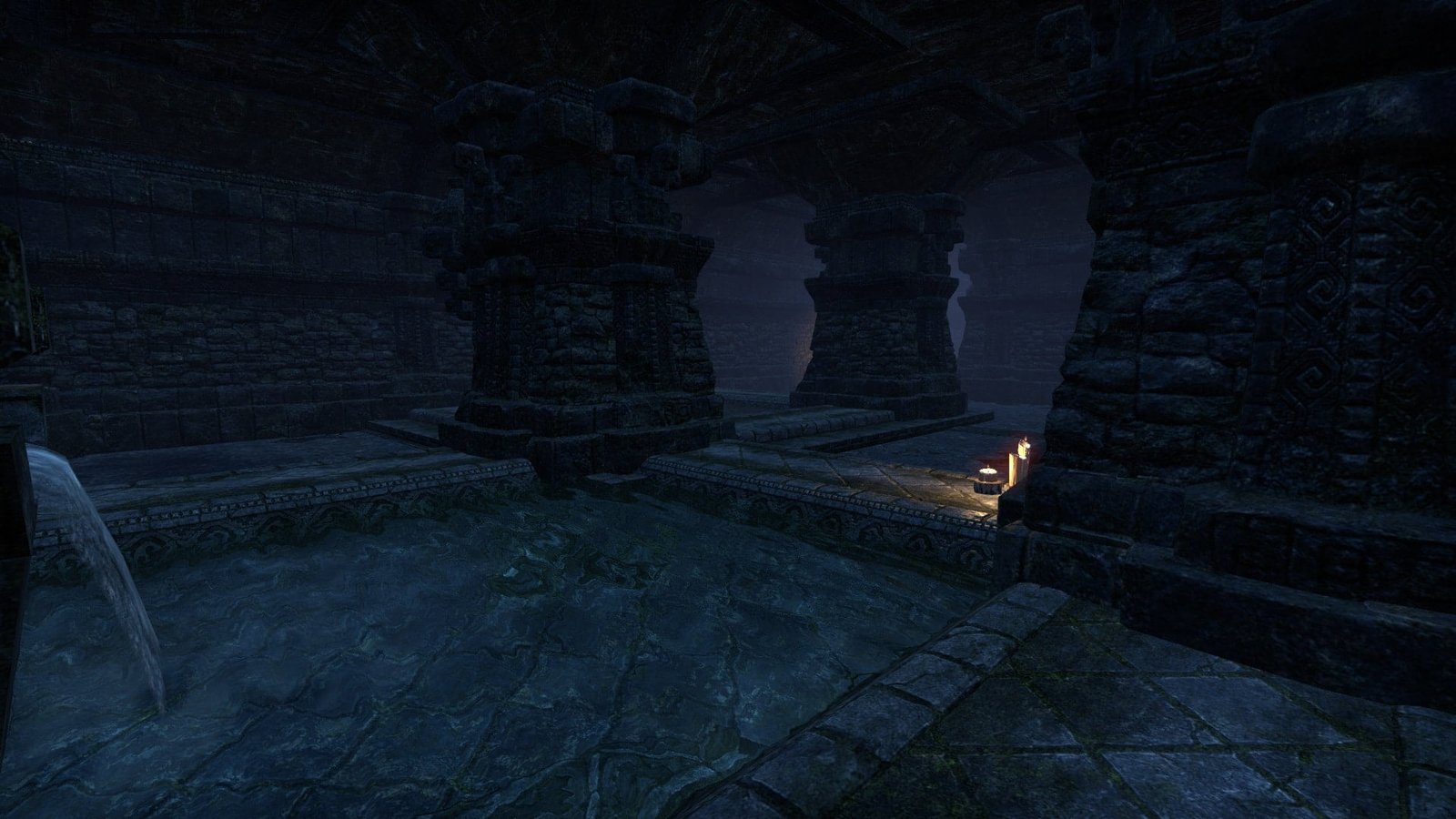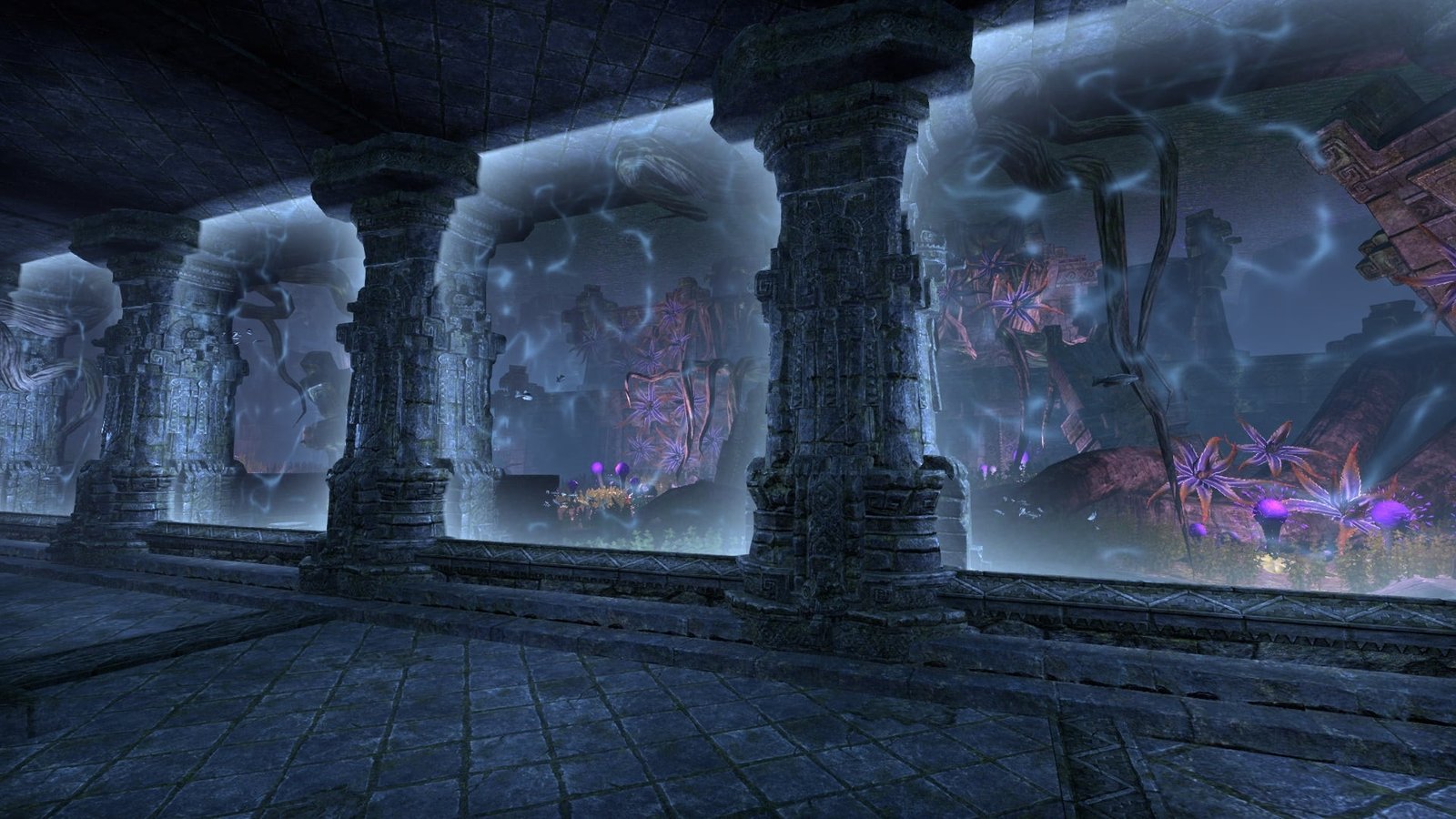 An unknown Argonian master of water equipped this underwater XanmeerManor with its own submerged picture windows that gaze out into the depths of a lush Murkmire lake.