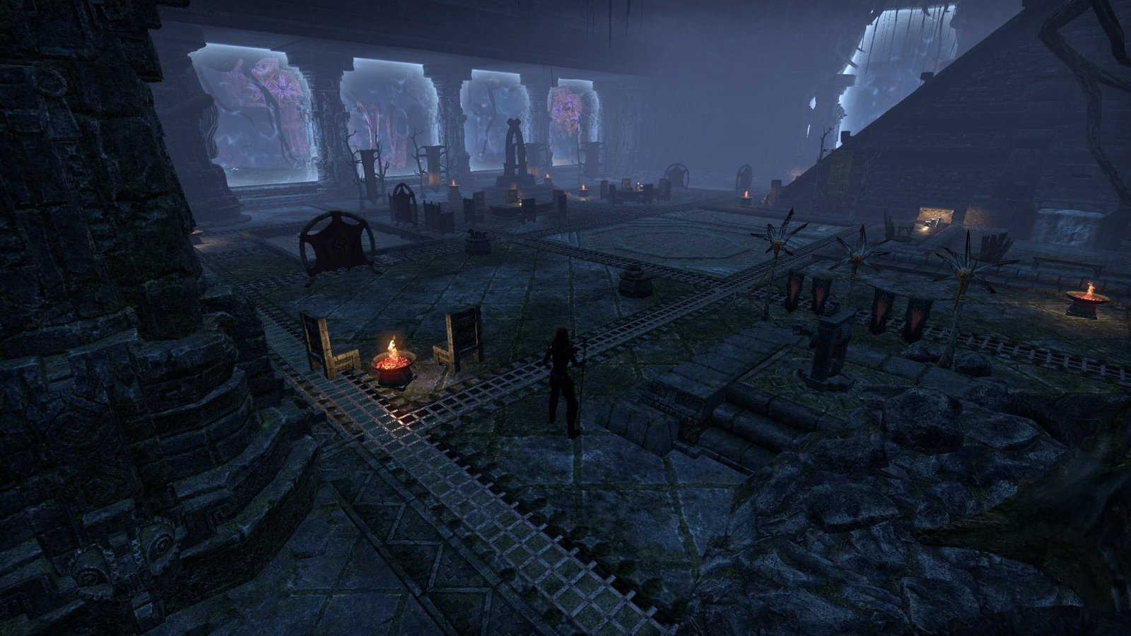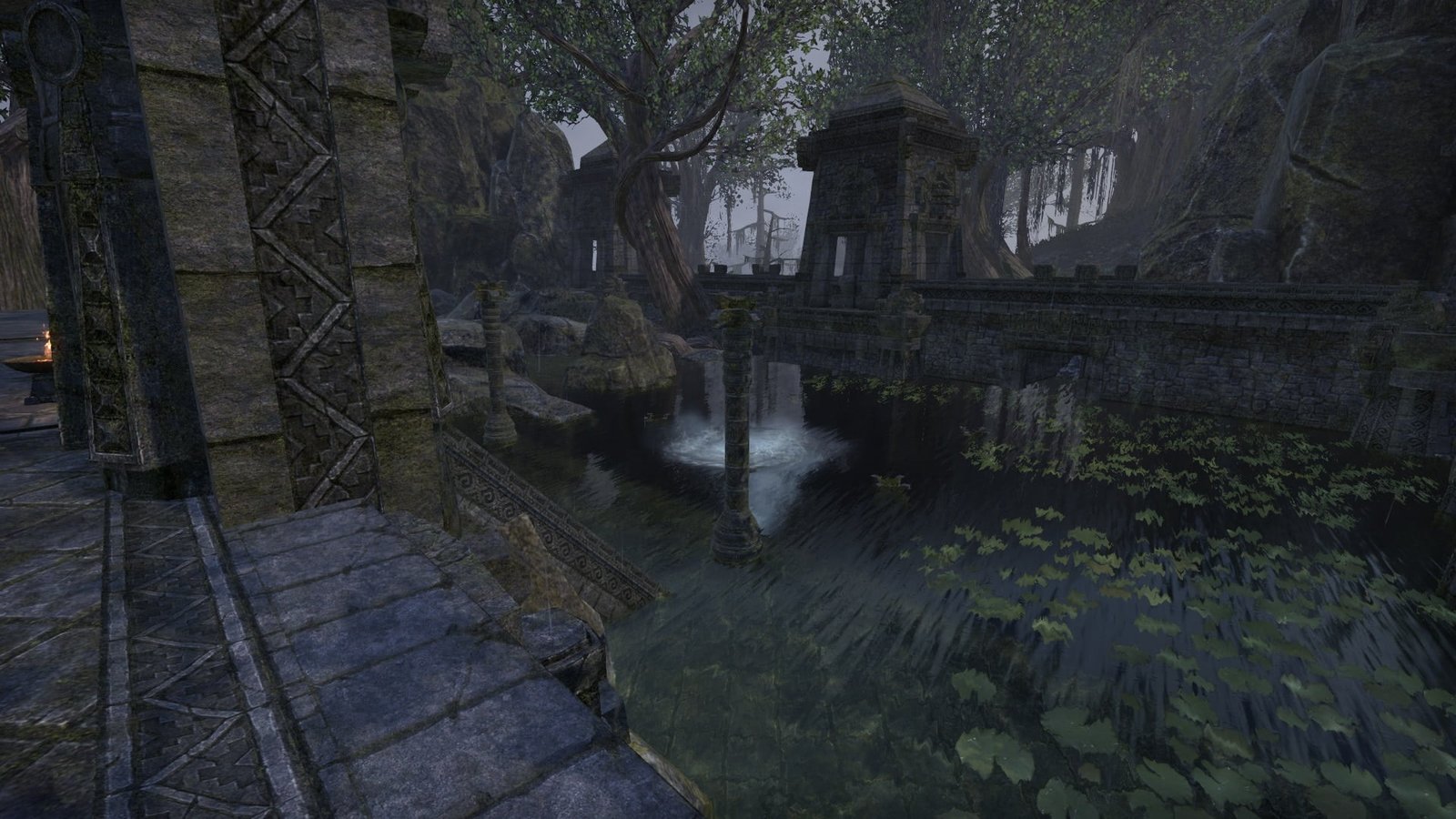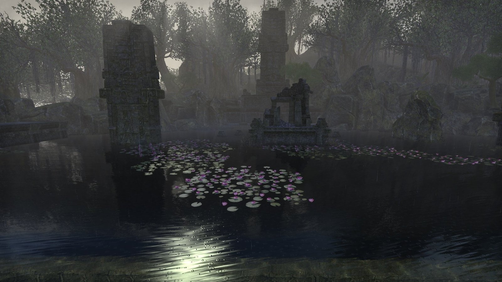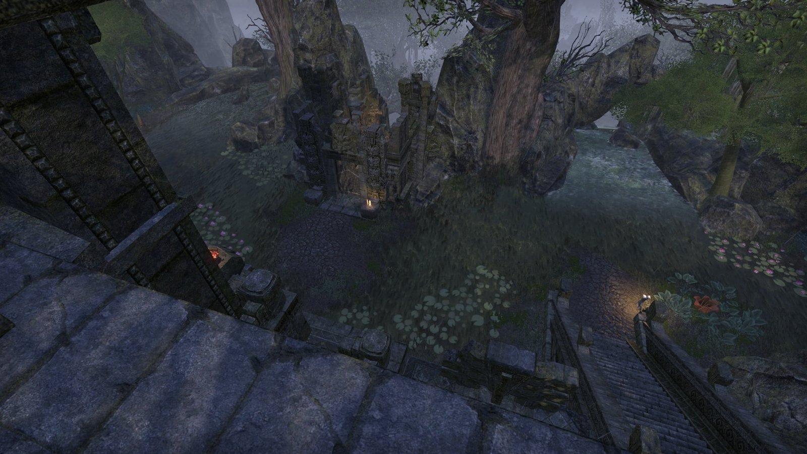An unknown Argonian master of water equipped this underwater XanmeerManor with its own submerged picture windows that gaze out into the depths of a lush Murkmire lake.