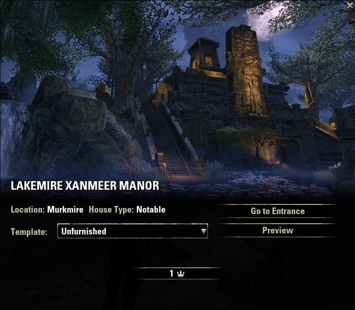 Here is my preview of the new Lakemire Xanmeer Manor coming soon to Elder Scrolls Online. It can currently be viewed and purchased on the Murkmire and Update 20 PTS. Click on any image to enlarge it.