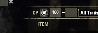 Clicking on the ‘Champion Point’ Symbol allows you to search for items with a CP level. If you only wish to search for items with 160 CP, then type 160 in the left field. Click on the CP symbol again to revert back to searching via Level.