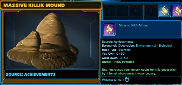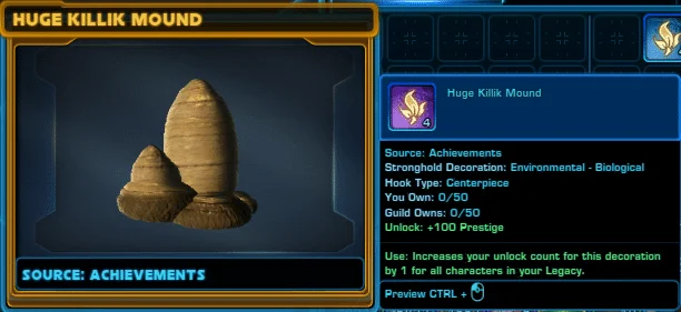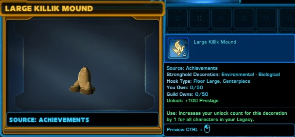 The Killik Mound Reward Chest contains three different Killik Mound decorations.