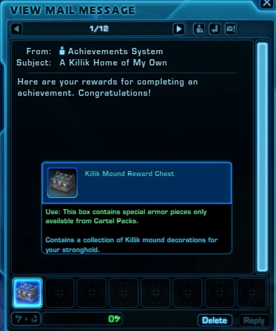Once you have collected 10 Killik mound materials, the achievement will complete and you will get a mail with the achievement reward.