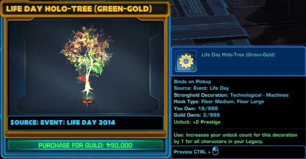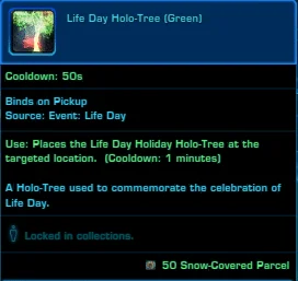 | Life Day Holo-Tree (Green) | Decoration | 40 Parcels | 50 |