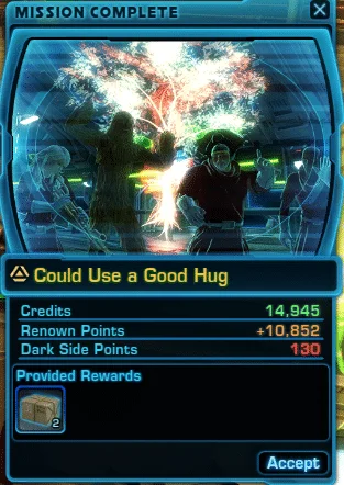 | Life Day: Come Here, You Big Lug! | Share the joy by completing the mission: Could Use a Good Hug during the Life Day event. | Infinite |