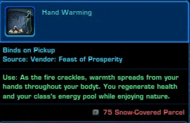 | A Special Snowflake | Throw a Snowball at a player, companion or select NPC. | 1 Snow-Covered Parcel |