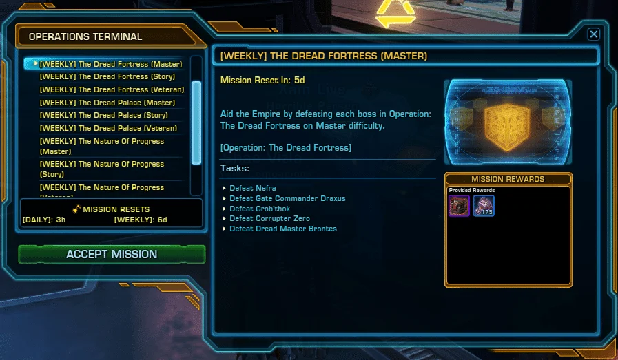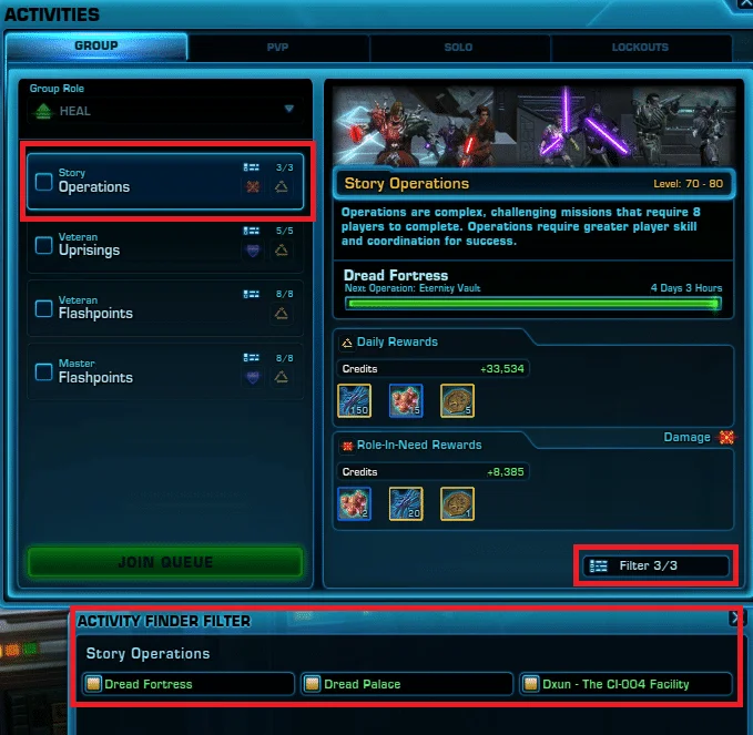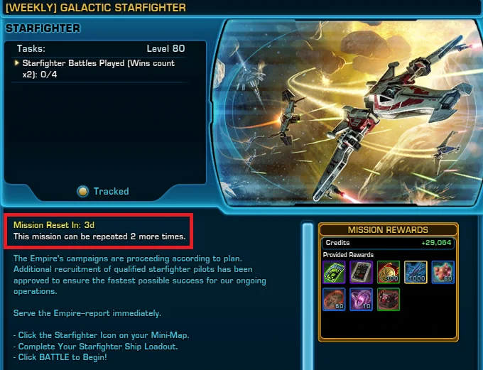 - It is best to mix in PvP, Flashpoint and Operations to maximise the number of weeklies you're completing.