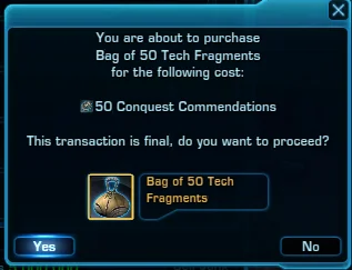 - Avoid doing other content (Dailies/Heroics, Flashpoints etc.) to level to 80 as you'll get too many Conquest Points (Implant Mission) and you will miss out on gaining the new currencies (as they only drop when you're level 80).