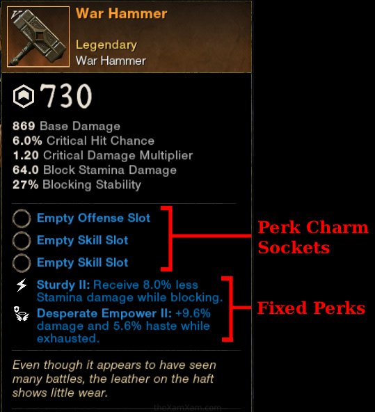 - On rare occasions Perk Slots may be populated with a Perk Charm already instead of an empty Slot (that can be replaced).