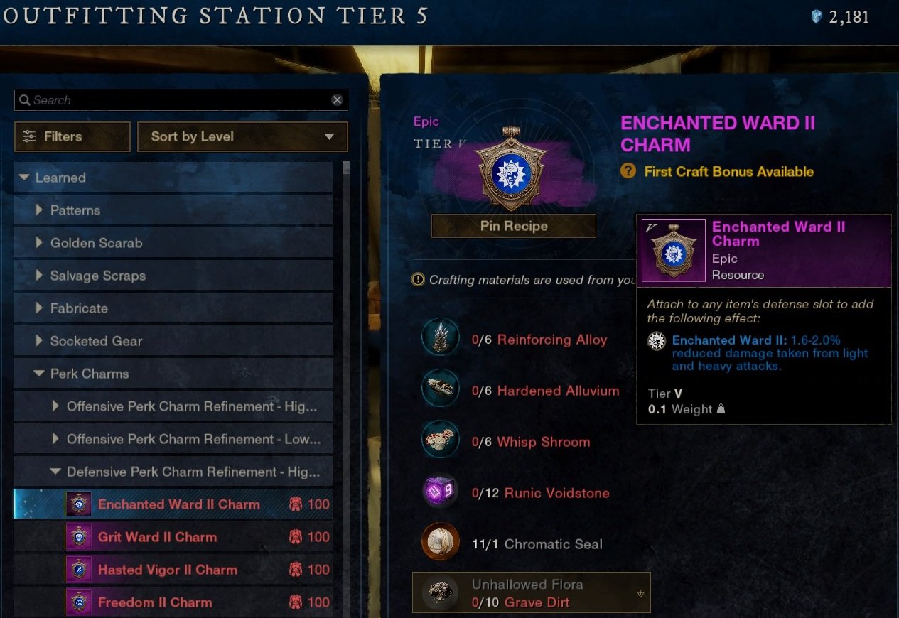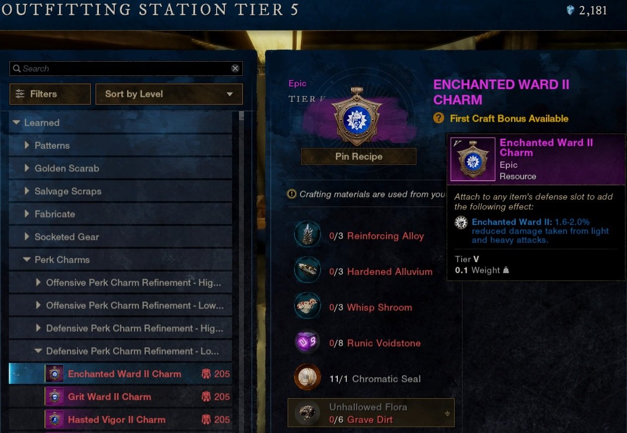 - Enchanted Ward II – -1.6-2% damage taken from light and heavy attacks.